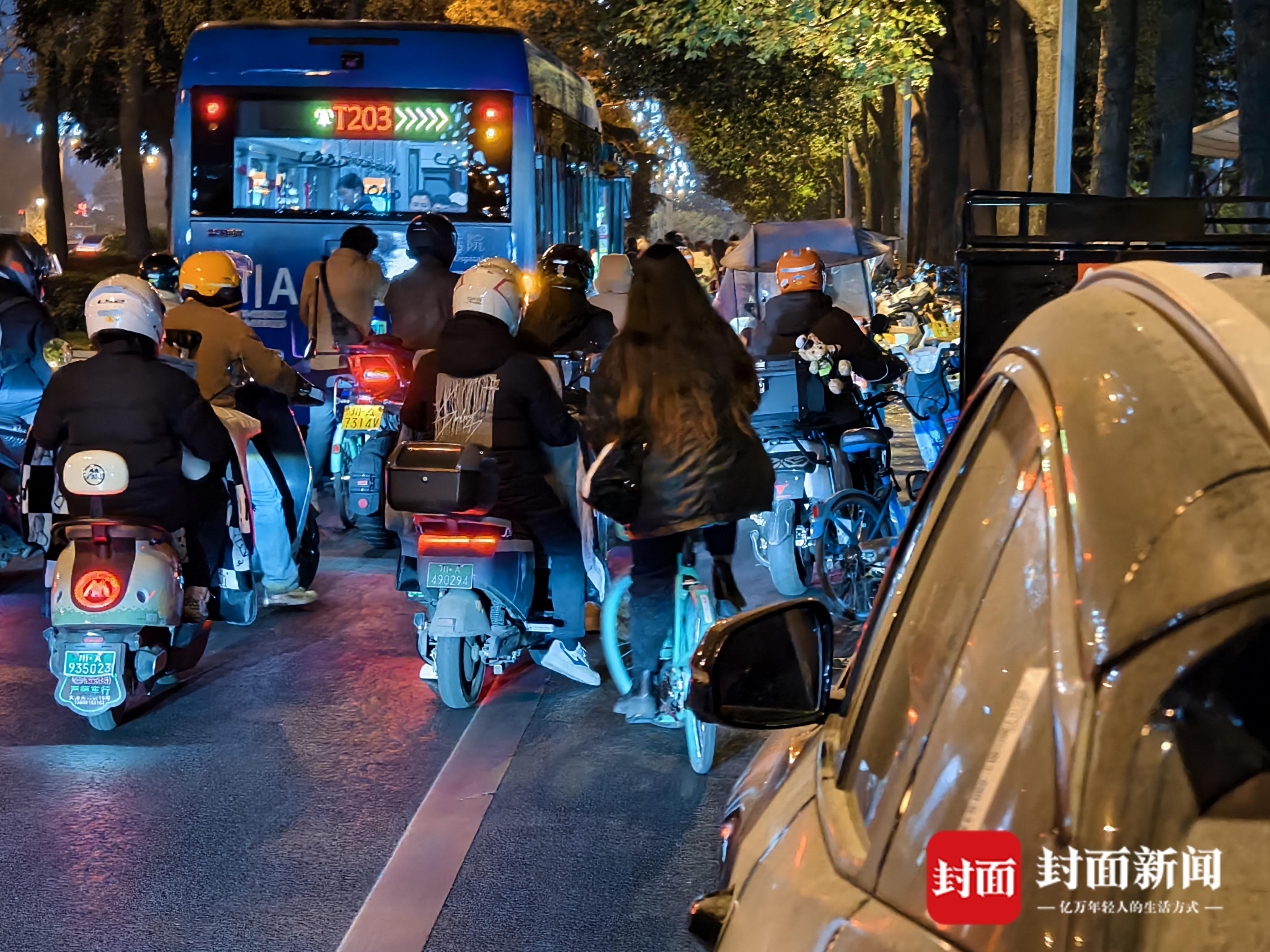晚6点半,天府大道上晚高峰的车流开始涌动,记者跟随下班的小多从世纪城附近出发,一路向南到华府大道,实地探访非机动车占道情况。