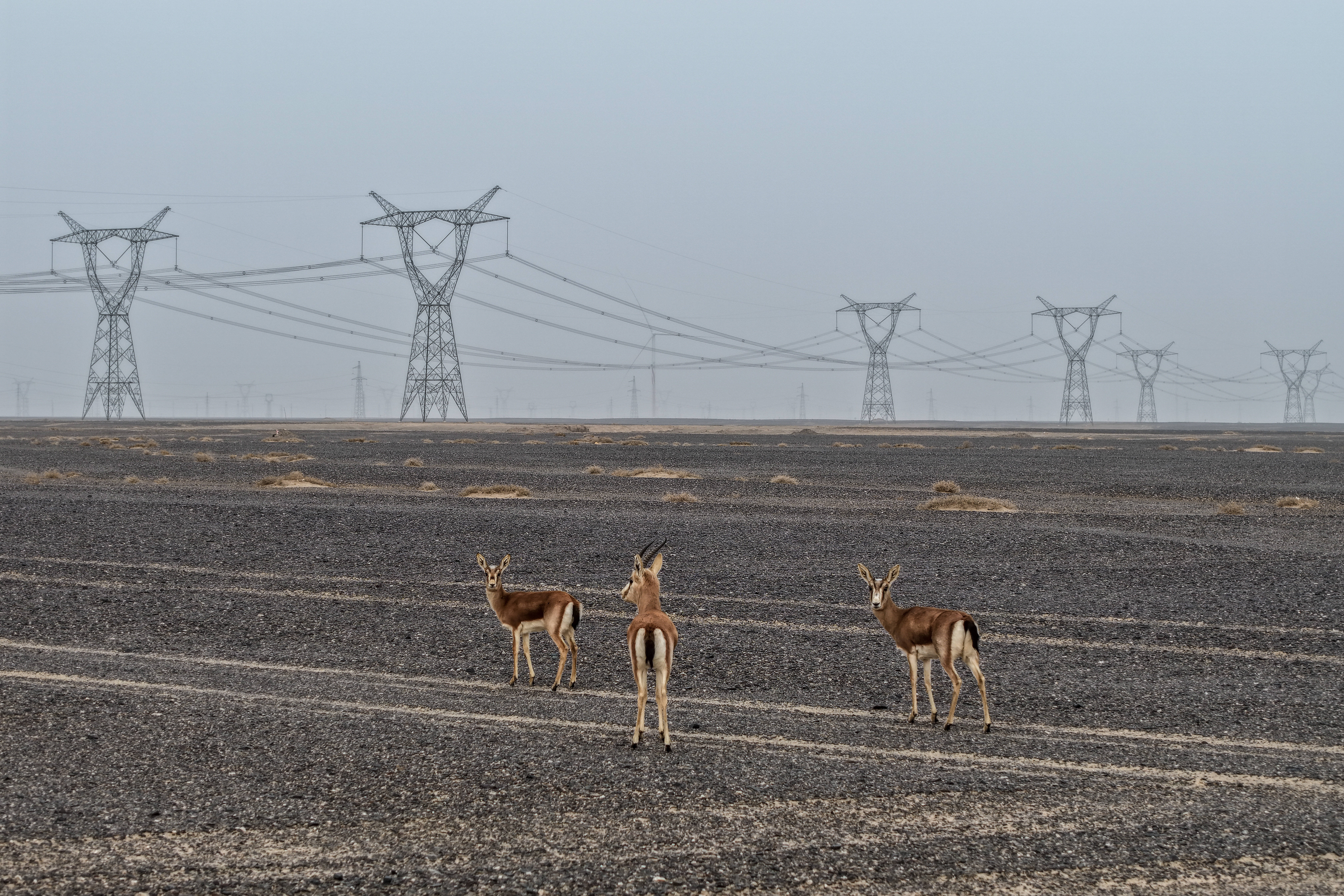 记者离开瓜州时,恰逢一群鹅喉羚在电网铁塔下活动,绘就出一幅野生动物与风电设施和谐共处的生态画卷,也见证着这片戈壁荒漠向绿色能源高地的华丽转变。