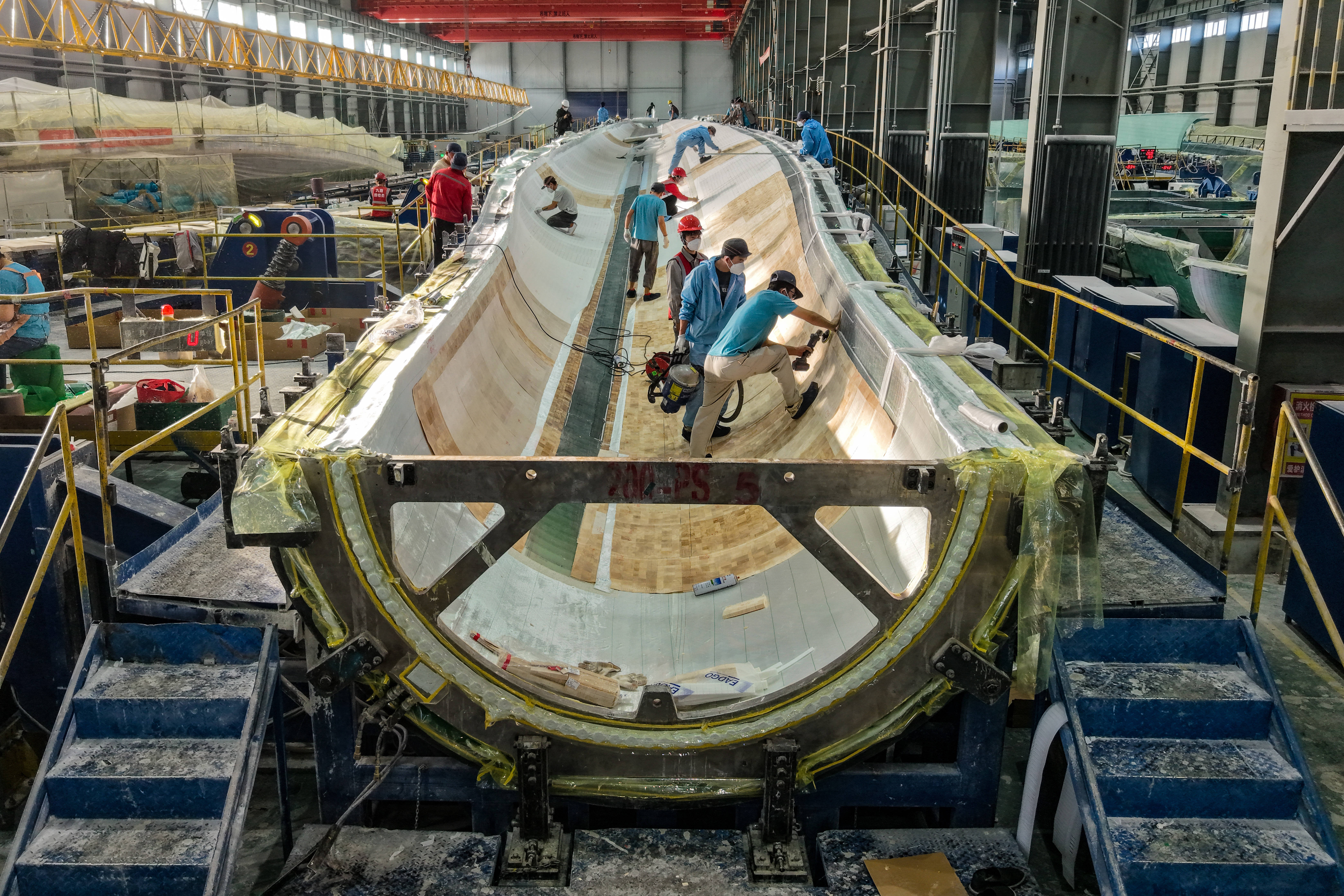 在甘肃省酒泉经济技术开发区的中国水电四局(酒泉)新能源装备有限公司装运生产线上,工作人员进行风机塔筒吊装作业(无人机照片)。新华社记者郎兵兵 摄甘肃河西走廊已构建起风电装备制造全产业链,在满足省内及周边地区需求的同时,积极推动企业“走出去”,稳步扩大风电整机及核心部件出口,持续提升产业的经济效益与国际影响力。